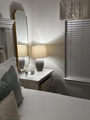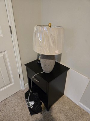 I’ve had this lamp for almost a year now. I appreciate its artisan look, and the brown color is grounding and neutral. Perfect size for the top of our dresser, and looks even nicer in person than online. It’s easy to turn on/off, and has been resilient to getting knocked over by toddlers. Overall, it’s a win for us!