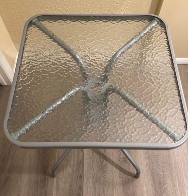 [This review was collected as part of a promotion.] The Barker Twenty Three point Five Silver Tempered glass metal table Clear and Bronze is super nice . It is of great quality . Very sturdy and strong . Also very stable . The Tempered glass has a Rippled design that makes the table very attractive . The table top is very smooth and even . This allows allows for placement of items to set very level . The table is designed for all weather use . As with anything it would be better to cover during excessive periods of wet weather . The powder coat finish adds a very nice look to the table . Easily assembled all parts were included . It is a great size for holding drinks and snacks . It made the area it was placed in more appealing . It is the added extra we needed that made the area come together as a whole .