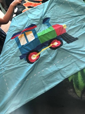 [This review was collected as part of a promotion.] My kid loves his new comforter, he says it’s warm and cozy , the size is big , the outer layer is cotton which I like , it comes with a matching pillow case , the design is cute my kid loves cars trains vehicles .