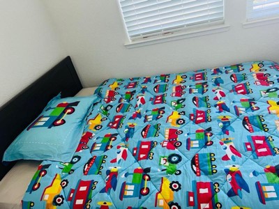 [This review was collected as part of a promotion.] If you are looking for a thick and comfortable comforter for your children I highly recommend this one. The design of the planes, trucks and trains are classic and colorful. The comforter itself is so comfortable and makes you falling asleep so easily, being snuggled in comfort. What I love about it the most is it doesn’t shrink after washing and drying. It also fits perfectly on any twin bed.
