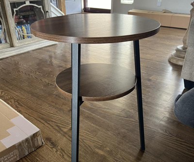 Costway 2PCS 2-Tier Bedside End Table Round Nightstand for Bedroom Living Room Walnut