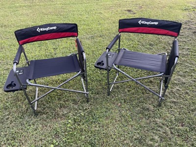 [This review was collected as part of a promotion.] These KingCamp padded camping chairs have it all. Sturdy, holds up to 400 pounds, with a wide seat to accomodate larger people. Comfortable: padded seat, backrest, and arms provide a surprising amount of comfort. folding side table with drink holder, and storage pockets give you all the space you need to keep your things nearby. Also, this chair folds up flat, has a handle, and is lightweight enough to carry around easily.