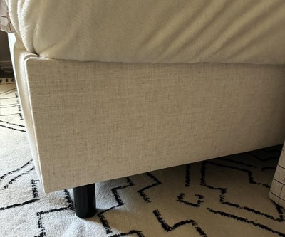 Twin Olivia Platform Bed in Textured Linen Talc - Threshold™: Pine Frame, Low Profile, No Box Spring Needed