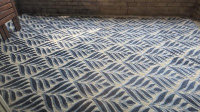 Ver pleasant blue mosaic pattern rug. matches with my slate grey deck. added beauty to my outdoors.