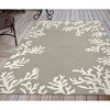 This hand-hooked area rug features a neutral silvery grey background white a coral motif border. A classic, subtle tropical motif, this rug will effortlessly compliment any space inside or outside your home. Made in China from a polyester acrylic blend, the Capri Collection is hand tufted to create bright multi-toned detailed designs with a high-quality finish. The material is flatwoven, weather resistant and treated for added fade resistant making this the perfect rug for indoor or outdoor placement. This soft, durable piece is ideal for your patio, sunroom and those high traffic areas such as your entryway, kitchen, dining room and living room. A fresh take on nautical decor, these area rugs range in style from coastal to tropical motifs that beautifully accent your home decor. Limiting exposure to rain, moisture and direct sun will prolong rug life.