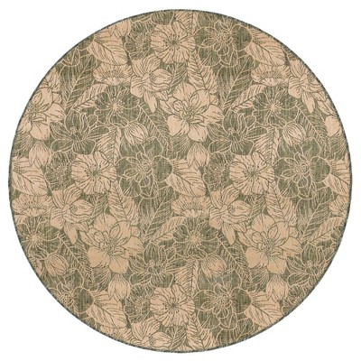 This machine made performance area rug features a decorative botanical pattern of etched florals with inverse colors in sand with a green background. Made in Turkey from 87% Polypropylene/13% Polyester, the Carmel Collection is Power Loomed to create subtle, naturally beautiful multi-toned detailed designs with a high-quality finish. The material is flatwoven, fade resistant, durable, UV stabilized and ideal for those high traffic areas such as your patio, deck, kitchen and living room making this the perfect indoor or outdoor rug. A fresh take on traditional area rugs, patterns range from tropical, coastal, contemporary and classic to seamlessly tie together the design of your home. Limiting exposure to rain, moisture and direct sun will prolong rug life