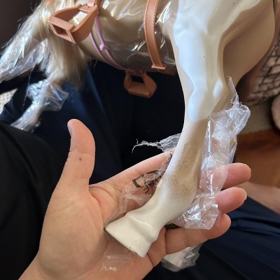The horse legs are all scratched up and missing paint.