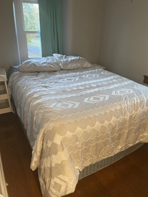 I love this comforter set! The neutral color is perfect and the fabric is so soft. I like the subtle geometric embroidered pattern. This set will be great to use year round and easily goes with any color sheet/blanket.