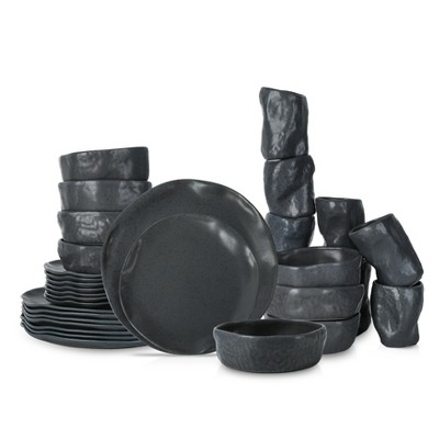 [This review was collected as part of a promotion.] This dining room stoneware set is absolutely stunning, chic and gorgeous. I love how thin the plates are and how they have an uneven hammered look. I have used these for several occasions recently and have had tons of compliments and questions of where they can get a set! I keep these on display on my table and it makes it looks so formal and beautiful with a touch of minimalist!