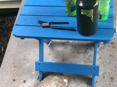 [This review was collected as part of a promotion.] This is a great little table. It matches very well with my black and white adirondak chairs and it is the perfect height! Very easy to clean spills off of and easy to move and carry around. Perfect piece for my patio.