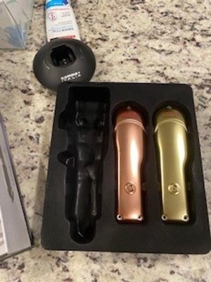 Absolute Alpha Professional Supercharged Modular Cordless Hair Clipper: This super hair trimmer offers lots of options, including the colorful assortment of covers/housings/bodies: silver, copper/rose, and gold. It has a 4-hour cordless running time on the ion battery, which can be quickly recharged on the heavy-duty stand with mini universal USB. The fully adjustable blade gives flexibility for even the closest cut and finish. Along with the five (5) guards included for styling/trimming, the universal 4-hole modular plate allows for use of any other fixed blades. A cleaning and maintenance kit, with mini screwdriver, is included