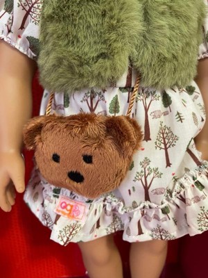 - Includes: 18-inch doll, a forest-print dress, a large bowknot headband, a faux-fur vest, a bear-themed purse, a pair of undies, a pair of shoes, a bottle of milk, a spoon, a jar of honey, a honey dipper, and a bowl of porridge that's just right.