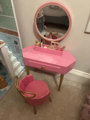 Our Generation Fabulous Fun Pink Vanity Table & Chair Dollhouse Accessory Set for 18'' Dolls