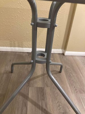 [This review was collected as part of a promotion.] I bought the belnick square silver tempered glass table a mo th ago, so happy I did. Very nice table, well made and sturdy. I love this table. Great piece of furniture, can be used I doors or out. Will add a bit of style to either. Easy to follow instructions, didn't take long to assemble. Table will seat 2 person, you can put hot or cold food and drinks on top of the glass.