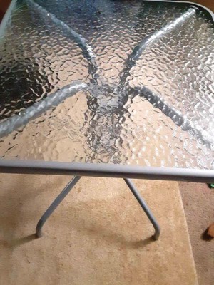 [This review was collected as part of a promotion.] The Barker Twenty Three point Five Silver Tempered glass metal table Clear and Bronze is super nice . It is of great quality . Very sturdy and strong . Also very stable . The Tempered glass has a Rippled design that makes the table very attractive . The table top is very smooth and even . This allows allows for placement of items to set very level . The table is designed for all weather use . As with anything it would be better to cover during excessive periods of wet weather . The powder coat finish adds a very nice look to the table . Easily assembled all parts were included . It is a great size for holding drinks and snacks . It made the area it was placed in more appealing . It is the added extra we needed that made the area come together as a whole .