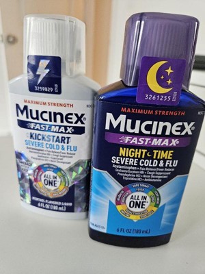 Mucinex All-in-One & Nightshift Kickstart Liquid Cold & Flu Treatment - 12 fl oz: 2-Pack, With Acetaminophen