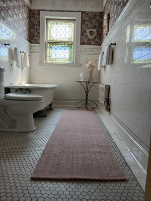 Very pretty soft color. The wool has a great feel to it and the rug looks well-made. I'm using it in my bathroom. One downside...my cats like it.