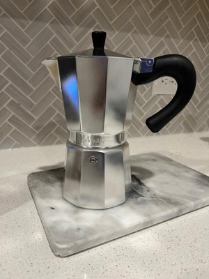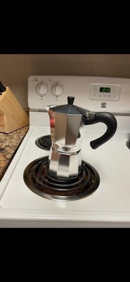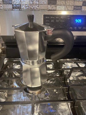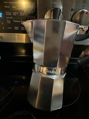 [This review was collected as part of a promotion.] Just received this in the mail! It's the perfect stove top expresso maker for those quick coffee mornings! The design is sleek, light, and easy on the eye. This is aluminum and looks very durable and long-lasting. It's super easy to clean. This has a 9 cup brewing capacity, which is perfect for having friends over for coffee. The heat distribution was perfect, and my cup was nice and hot.
