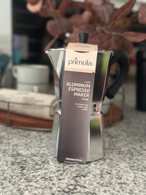 Primula Aluminum 9 Cup Stovetop Espresso Maker Polished: Manual Silver Coffee Maker, Hand Wash, Ground Espresso Use