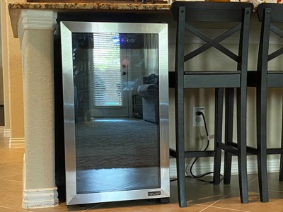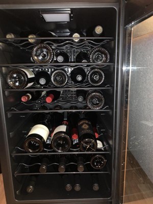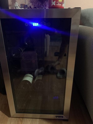 This is a great wine fridge. I like how compact it is, how well it works, and how many bottles fit inside of it for its size. I will say that the bottles have to go in front ways and back ways in order to fit as many bottles as advertised though. And the light with the temperature on the front… Is really bright and I live in a studio so I have to cover the light at night (but that is likely unique). Some bottles are too fat to fit in the shelves… But luckily you can remove some of the shelves in order for things to fit better. And you're able to stack the bottles when you do that so you can still fit as money. I will say that the unit did stop working about a month in… And this is the best part: the company sent me a new one and I put the old one in a box and they sent a Fed ex label to send it back. This was really fantastic customer service because I feel like for many companies you have to jump through a lot of hoops. I let them know that I did all of the troubleshooting tasks listed and I even measured how much electricity was in my socket. But they made it really easy. I appreciate that in a company