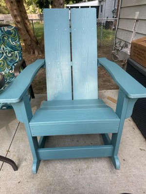[This review was collected as part of a promotion.] I love this rocking chair. The seafoam color is really pretty. It was pretty easy to put together in. The material is nice because it's not going to crack in weather like standard wood. It seems like a good quality chair.