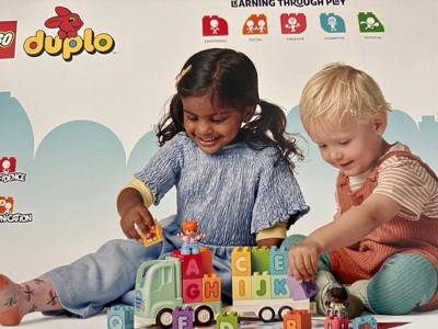 [This review was collected as part of a promotion.] The LEGO Alphabet Truck is a toy that can help toddlers learn the alphabet through creative building and imaginative play. It includes a truck with a trailer, figurines, and a brick for each letter of the alphabet. Toddlers can improve their fine motor skills by stacking the letter bricks onto the back of the truck.