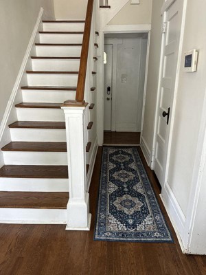 Nourison Fulton Vintage Bordered Medallion Non-Slip Flatwoven Indoor Rug Navy Ivory 1'10" x 5'