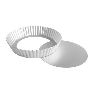 Bake tarts, quiches, pies and a variety of other sweet and savory recipes with Fat Daddio's ProSeries Fluted Tart Pans. These pans are great for creating firm and flaky crusts. Simply push through the bottom to de-pan. Use the removable-bottom to display and serve your tart. Seamless design with fluted sides. Safe for citrus-based foods. Built to last through daily use in both the home kitchen and commercial establishments. Hand wash recommended.