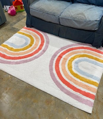 4'x5'6" Rainbow Kids' Rug - Pillowfort™: Multicolored Cotton Tufted Medium Pile, Machine Washable