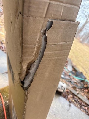 This came clearly damaged. From the tape trying to fix the dents and rips, it was not necessarily done in shipping but looks to be by the factory. I contacted Target to return, and they have no pick up option. It is up to me to try and carry a heavy, large object to my car and drive to a store or shipper according to Target.
