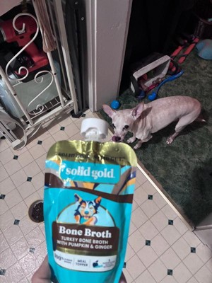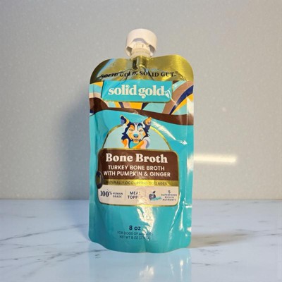 [This review was collected as part of a promotion.] [ I received this product for free in exchange for my honest review ]. Solid Gold Bone Broth Turkey Topper for Dogs was a nice treat for my fur babies. It was easy to prepare and mix in with dry dog food. It adds a little moisture and extra flavor to the dry dog food that they seemed to love! Storage is super easy also, as it's a twist off cap on a pouch.