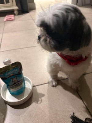 [This review was collected as part of a promotion.] My dog absolutely loved this! It helps soften his dog food and I’m sure adds a ton of flavor. It’s very liquidy so be careful putting it in bowls. I will definitely be purchasing more of these as a little topper/treat for him.