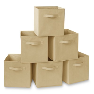 Casafield Set of 12 Collapsible Fabric Storage Cube Bins, Beige - 11" Foldable Cloth Baskets for Shelves and Cubby Organizers