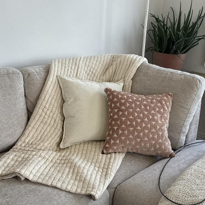 Velvet Jacquard Geo Square Throw Pillow Blush/Ivory - Threshold™: Textured, Zippered, Indoor Decor