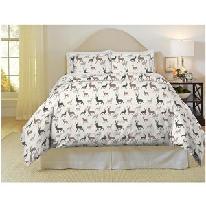 Pointehaven Autumn Deer 170 GSM 100% Cotton Heavy Weight Flannel 3 pc Duvet Set, Full/Queen