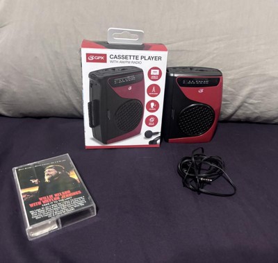 GPX® Portable Cassette Player with AM/FM Radio, Red and Black, CA337B