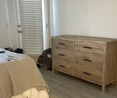 Pacific View 6 Drawer Dresser Prime Oak - Sauder: Rustic Storage Furniture with Metal Runners