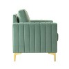 Pull together a glam-worthy living room with this modern chair. The velvet upholstery and eye-catching rich hue give this must-have chair a pop of sophisticated style. Vertical channel tufting and golden metal legs added depth to this glamour chair that effortlessly becomes the focal point in your living room. Perfect for a modern look with glam accents, this piece has a sturdy wood frame and features soft filling for an inviting feel. Add it to your room for a subtle touch of glam on its own. Versatile and elegant, this chair is ideally suited for a variety of decor styles in your living room, lounge room, or home office.Item size:32.5"Wx30.5"Dx35"H