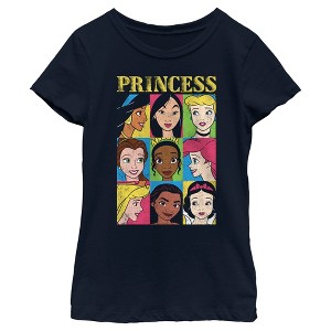 • Strut your stuff with this stylish new girls' t-shirt that is perfect for every occasion! Featuring colorful squares with Jasmine, Mulan, Cinderella, Belle, Tiana, Ariel, Aurora, Pocahontas, and Snow White along with the word "Princess" in distressed yellow letters above.