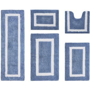 Hotel Bath Rug 100% Premium Cotton Tufted Weave Two Tone Reversible 5 Piece Bathroom Rug Set, Super Soft & Water Absorbent, Machine Washable Bathmat - 1 of 4