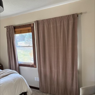 I wish I had spent the extra few dollars for the Threshold brand ones. These are really rigid and feel plasticy. Because if this they don’t close very well and there’s always a gap that doesn’t happen with my threshold target darkout curtains.