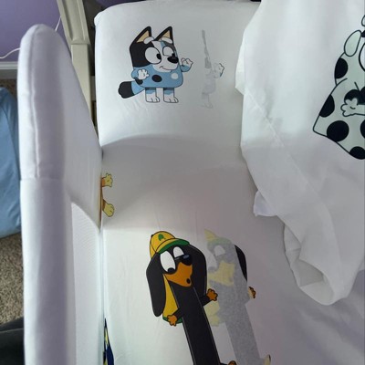 My kids love their Bluey sheets! All the characters are adorable, and the 2 sided design of the pillowcase is a nice detail. I will say white is not my first choice when it comes to kids' bedding because of potential spills or accidents, but it didn't stop me from getting a set for each kiddo. My kids only had one complaint "who is that? Muffin is the wrong color" lol.