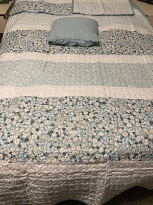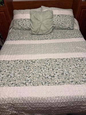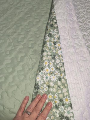 [This review was collected as part of a promotion.] I loved this quilt set, for the spring time when the weather starts to slowly get warmer. The color and pattern is beautiful. My favorite color is green so anything green makes me happy. The fabric is very soft and cozy. It fits my bed really nicely.