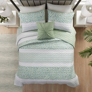 Madison Park 4pc Tulia Seersucker Quilt Bedding Set with Throw Pillows Green