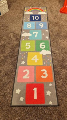 [This review was collected as part of a promotion.] This hopscotch area rug is the perfect addition to any play room! My kids love playing with it all the time. I love how colorful it is too! It adds a nice splash of color to the play room too. The area rug is very well made and durable, easy for the kids to roll up if they want it out of the way.