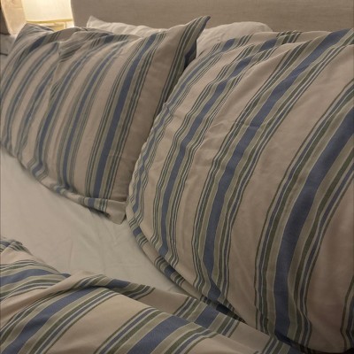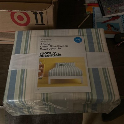 King Cotton Blend Sateen Duvet Cover and Sham Set Ivory/White/Sage Green Striped - Room Essentials™: 225 Thread Count, OEKO-TEX Certified