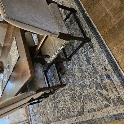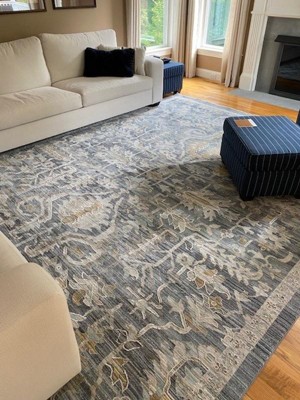 Very pretty rug love the colors. I first ordered the runner to try to get an idea of the color and the pattern. I have to say the only reason I gave it four instead of five stars is the pattern is much larger when you get it in a big rug. This is 9 x 13. It has some golds in it too. It’s a bit wrinkly right now, but I just put it down. It’s nice and soft but if you want a cushy feel it needs a pad