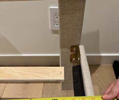I was so excited to get this bed for my daughter, it was perfect. This Bed is terrible in actuality. The fabric isn’t as shown, the bed is bowed and the rails are 3” short due to this. 60” at one end and 63” at the other. The headboard is miss drilled so it doesn’t align. The fabric was torn on the inside in a spot. The challenge now is “how do I return these huge boxes and pack up to return?” Buy an assembled bed on living spaces or west elm. You will waste 8 hours of your time to be very disappointed. Don’t buy! I wish people reviewed this prior to me purchasing. Target should remove from site. Terrible!!!!