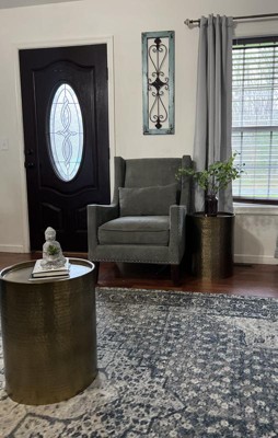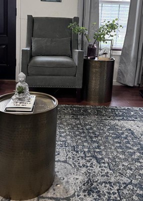 Just upgraded my living room with these stunning drum-shaped accent tables, and wow, they're a hit! The larger one makes a bold statement while the smaller one complements it perfectly, tucking away neatly underneath when not in use. The hammered accents are a total eye-catcher, adding a layer of sophistication and texture. Their metal frames are super sturdy, assuring me they'll stand the test of time. Ideal for my apartment since they don't take up much space but still offer plenty of style. These tables are the ultimate blend of form and function - absolutely adore them!