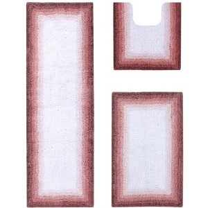 Better Trends Torrent 100% Cotton Tufted Non- Slip Backing 3 PC (20" x 20" | 21" x 34" | 20" x 60") Bath Rug Set - Rose